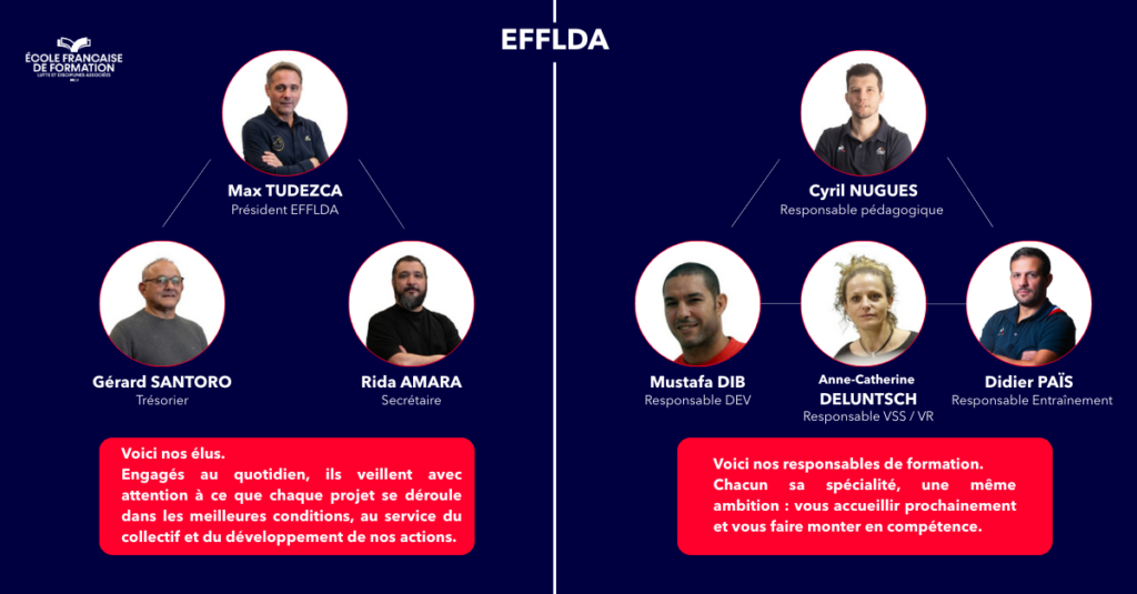 L’EFFLDA (École Française de Formation en Lutte et Disciplines Associées) est l’organisme de formation dédié à la lutte et à ses disciplines associées.